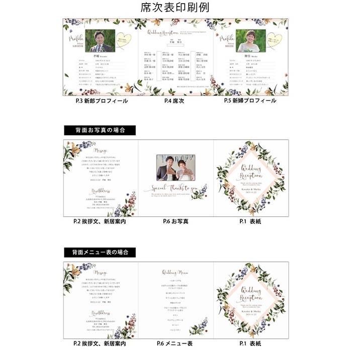 席次表 プロフィール面アレンジ例 見開きページ 新郎新婦様の写真掲載ナシ Bouquet ブーケ 店主のブログ